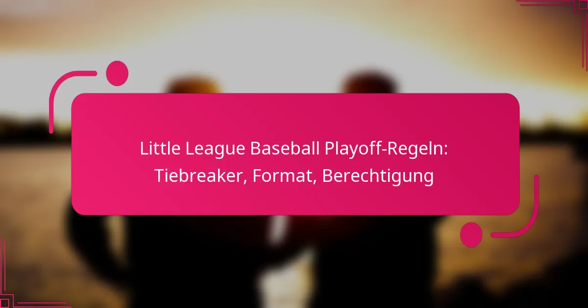 Die Playoffs der Little League im Baseball unterliegen spezifischen Regeln, die die Teilnahmeberechtigung, das Playoff-Format und die Verfahren zur Entscheidung bei Punktgleichheit regeln, um einen fairen Wettbewerb zu gewährleisten. Tiebreaker sind entscheidend für die Bestimmung der Platzierung in den Playoffs unter Teams mit identischen Bilanz, wobei Kriterien wie direkte Begegnungen und Run-Differential verwendet werden. Das Playoff-Format kann variieren und umfasst typischerweise entweder ein K.-o.-System oder ein Doppel-K.-o.-System, je nach den Vorschriften der Liga, wobei die Teams basierend auf ihrer Leistung in der regulären Saison qualifiziert werden.