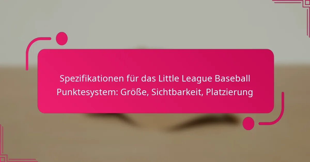 Die Punktestände für Little League Baseball sind mit spezifischen Spezifikationen entworfen, um Sichtbarkeit, Haltbarkeit und die Einhaltung der Ligastandards zu verbessern. Wichtige Überlegungen sind Größe, Materialien und Display-Technologie, die alle zur Effektivität der Anzeigetafel beitragen, indem sie Informationen an Spieler, Trainer und Zuschauer übermitteln. Eine ordnungsgemäße Platzierung ist ebenfalls entscheidend, um sicherzustellen, dass die Anzeigetafel aus verschiedenen Winkeln und Entfernungen während der Spiele gut lesbar ist.