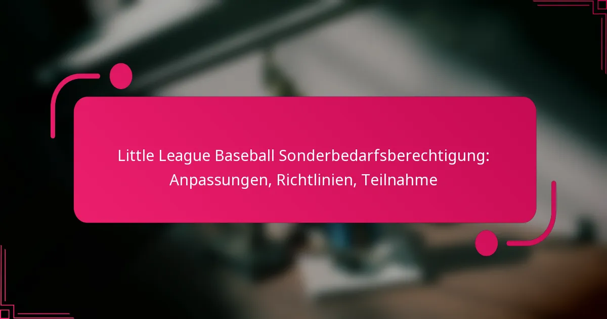 Die Little League Baseball fördert die Inklusion von Spielern mit besonderen Bedürfnissen durch spezifische Richtlinien, die eine gerechte Teilnahme sicherstellen. Diese Richtlinien konzentrieren sich darauf, individuelle Anforderungen zu berücksichtigen, ein unterstützendes Umfeld zu fördern und das Engagement der Gemeinschaft zu ermutigen.